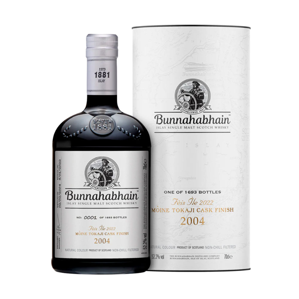 A névben szereplő „Moine” skót gael nyelven tőzeget jelent, ami rögtön utal a whisky erőteljesebb, füstösebb karakterére. A klasszikus Bunnahabhain-stílushoz itt intenzívebb füstösség társul, amelyet a tokaji hordó lágy gyümölcsös, citrusos és édes tónusai finomítanak. Így a korty egyszerre gazdag, mély és különlegesen rétegzett: a füstös, tőzeges jegyek mellett megjelenik a gyümölcsösség, a lágy édesség és egy elegáns, boroshordós árnyalat is.