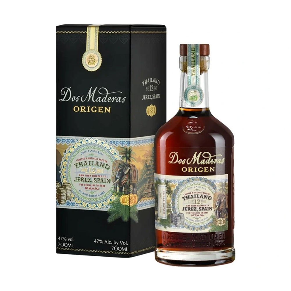 Dos Maderas Origen Thailand 12 éves rum egy különleges prémium rum, amely egyedi érlelési folyamatának köszönhetően gazdag, mély és kifejezetten összetett karakterrel hódít. A karibi térségből származó rumokat először hagyományos módon érlelik, majd sherry hordókban finomítják tovább, így az ital még selymesebb, gazdagabb és elegánsabb aromavilágot kap. Ez a különleges eljárás remekül kiemeli a rum mélyebb, édesebb és finoman fűszeres oldalát.
