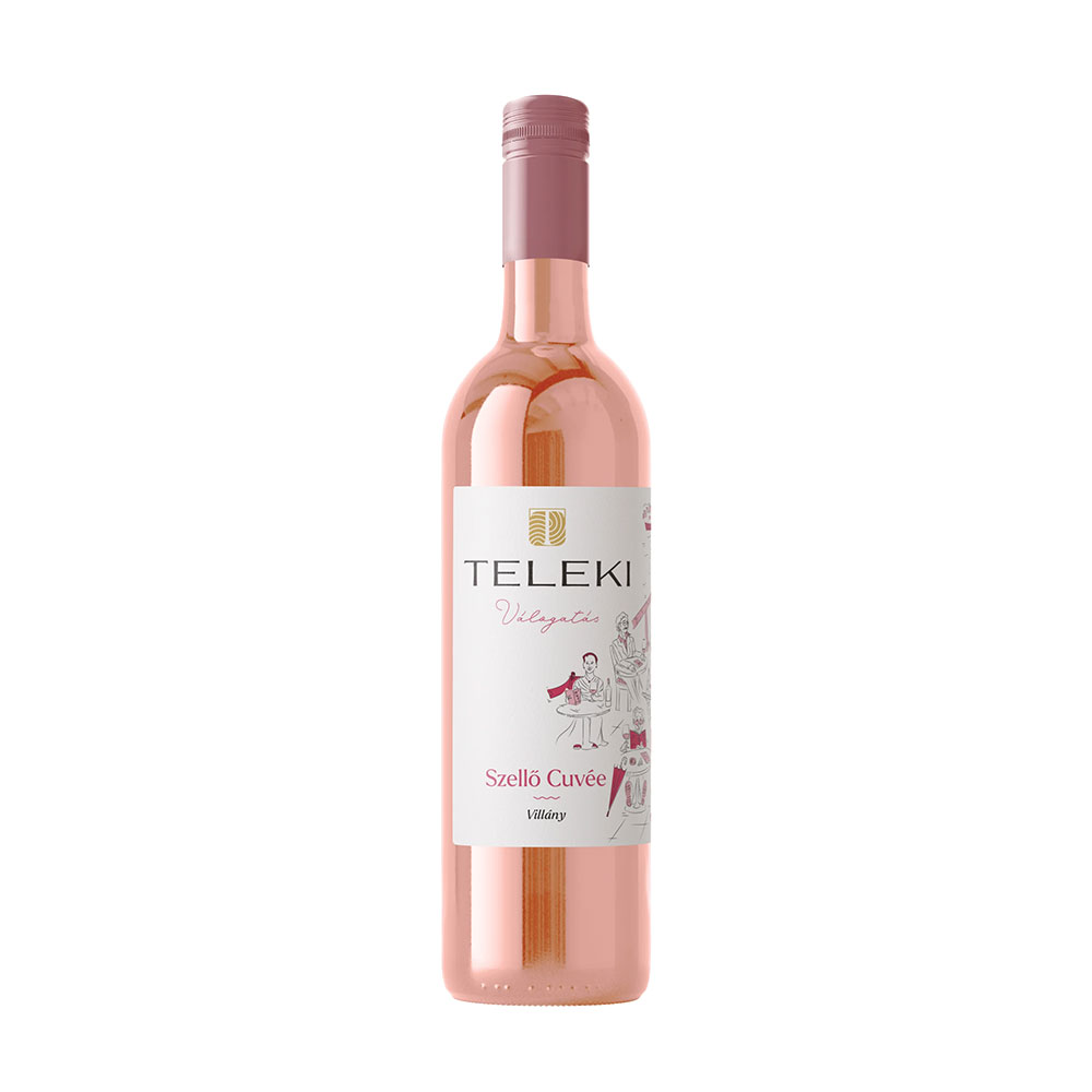 Teleki Válogatás Szellő Cuvée Rosé száraz bor – A könnyed, nyári esték hangulatát idéző villányi rosé, ahol az üde Portugieser és az illatos Syrah harmonikus találkozása élénk savakat és gazdag gyümölcsösséget eredményez; ízében eper, málna és ropogós cseresznye jelenik meg, friss, üdítő lecsengéssel.